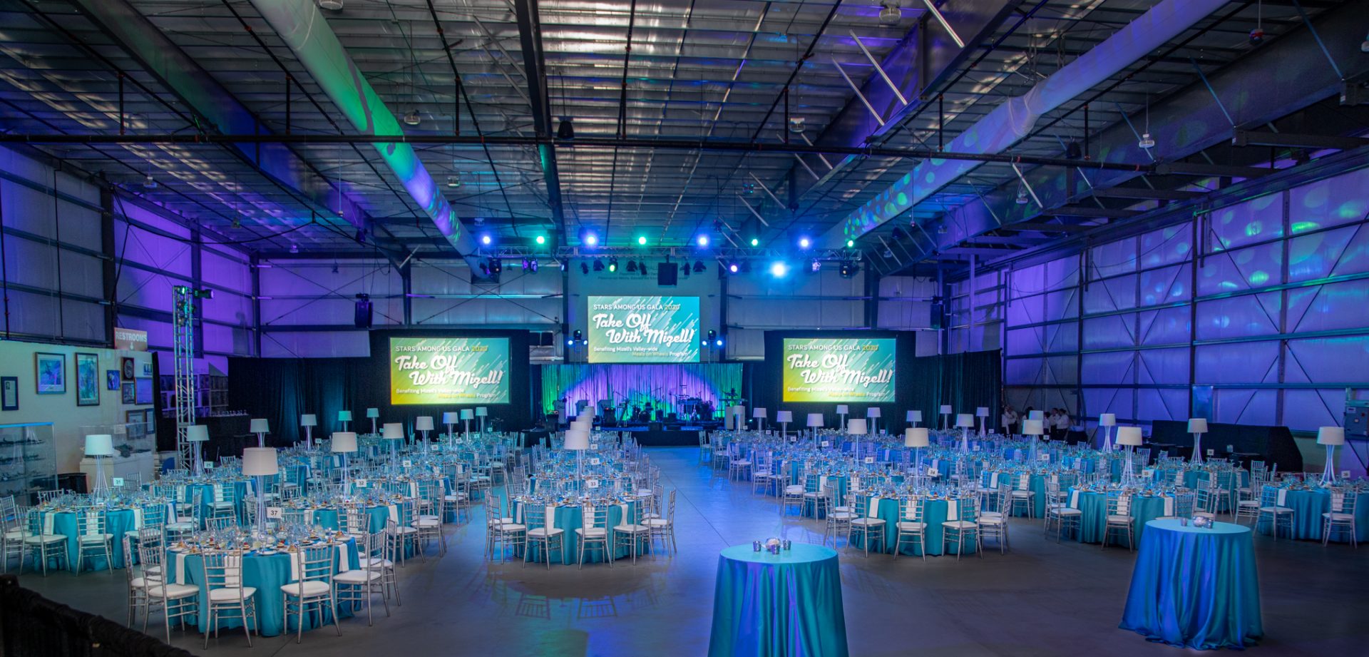 MOMENTOUS has worked with Mizell since 2015 to design and produce their largest and most important fundraising event; their Stars Among Us Gala. The event was staged within two, 20,000 square foot aircraft hangars at the Palm Springs Air Museum and featured a “Take Off With Mizell” concept; strategically designed to integrate Mizell’s organizational rebranding as well a tie in to the event location. Strategic event services provided included event strategy and creative, event marketing, design and décor, off premise catering, entertainment and advanced technical production.